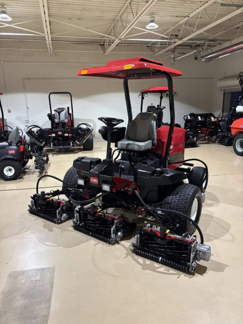 • Versatility: The Reelmaster 5010-H has a Plug and Play feature that allows it to accept 5-inch or 7-inch diameter DPA cutting units. Simply plug in the cutting unit and motors of your choice and the machine automatically make all the necessary adjustments. The 5010-H can be equipped with 5″ or 7″ reels, in either 8 or 11 blade configurations.