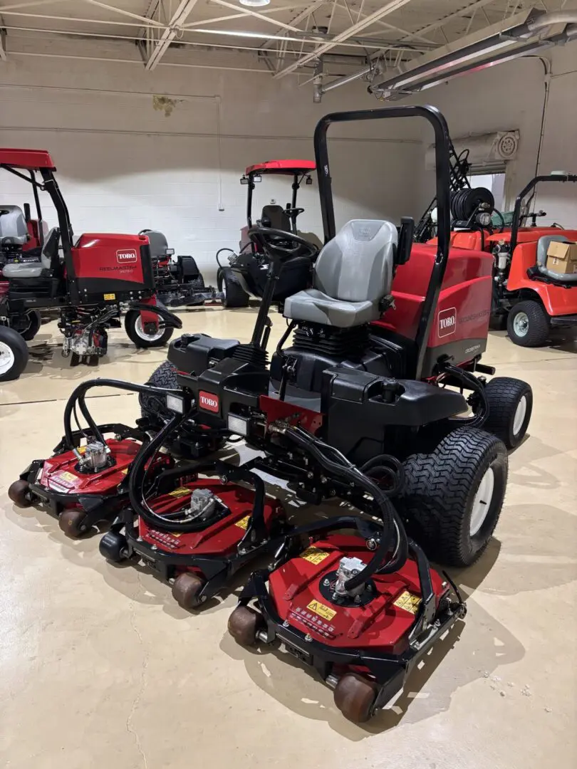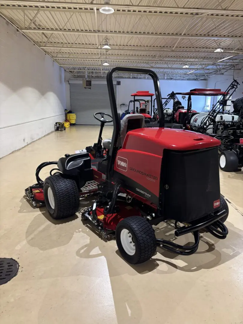 The Groundsmaster® 4300-D has a lightweight footprint and CrossTrax™ 4-wheel drive for superior hill-climbing. Each of its five Contour™ Plus cutting units closely follow contours for an even cut on undulating terrain.