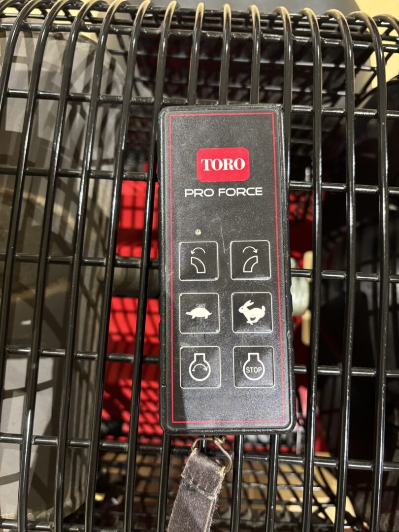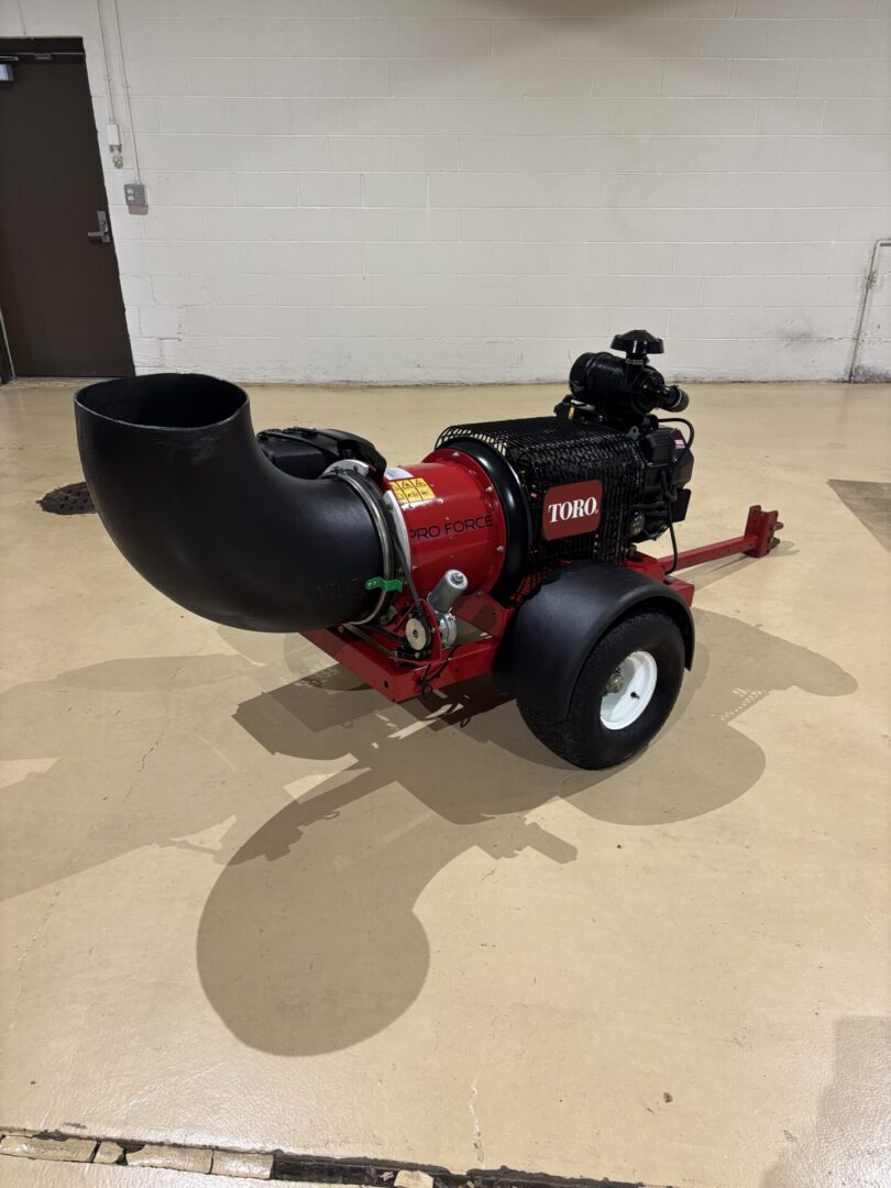 The Pro Force™ debris blower provides greater air volume flow than any single nozzle turbine-type debris blower currently available. A wireless RF remote provides the capability to start and stop the engine, adjust engine throttle up and down for low to high RPM range of operation, and rotate the nozzle 360 degrees – all from the operator’s seat in a Toro® Workman® or similar utility vehicle. This blower delivers superior productivity and greater efficiency in jobs ranging from cleaning cart paths and other maintained paved areas, to blowing grass clippings, aeration cores or chaff, or other organic debris.