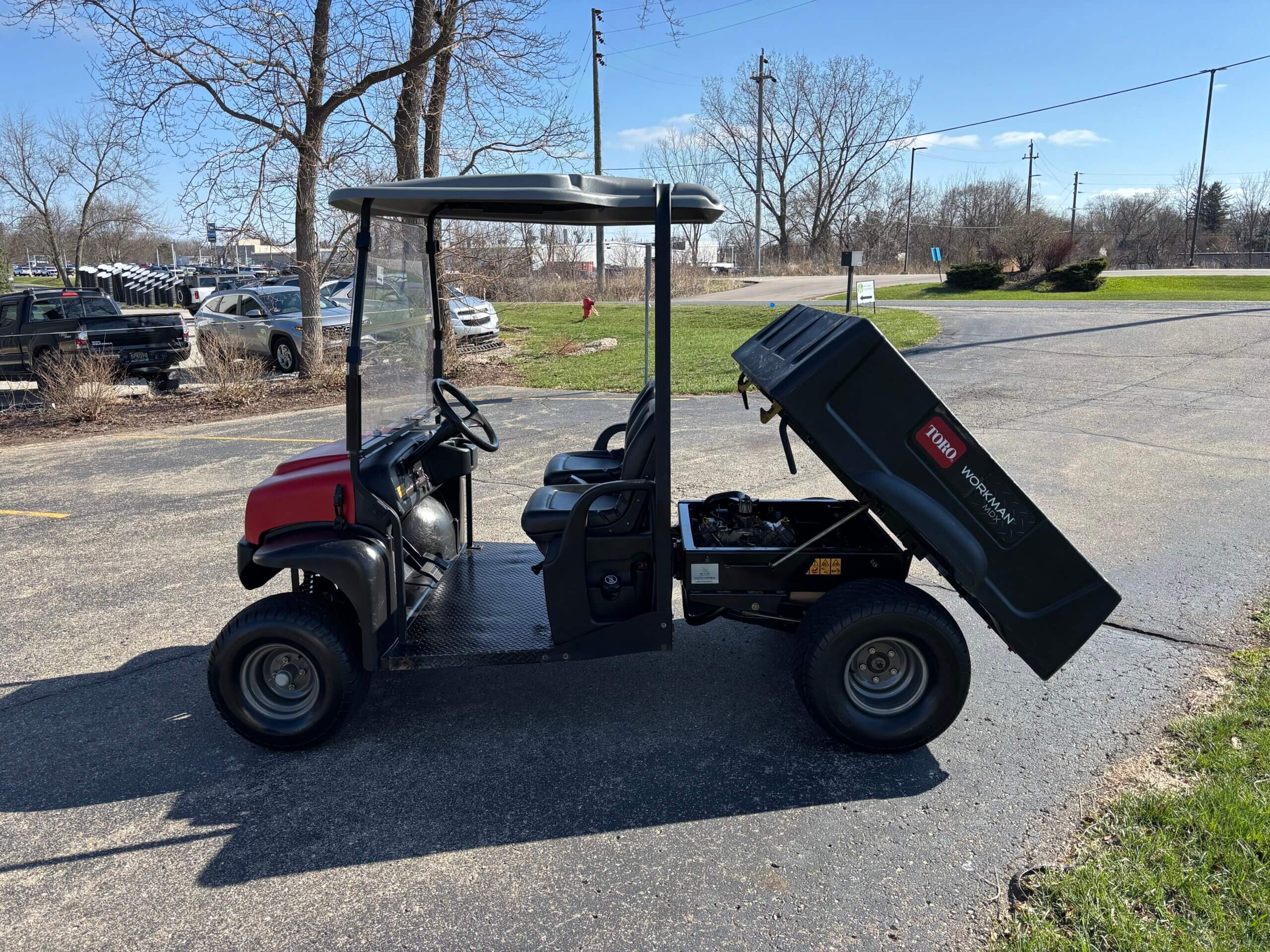 - Includes: Canopy, Folding Windshield, Manual Dumpbox, Hitch and LED Lights
